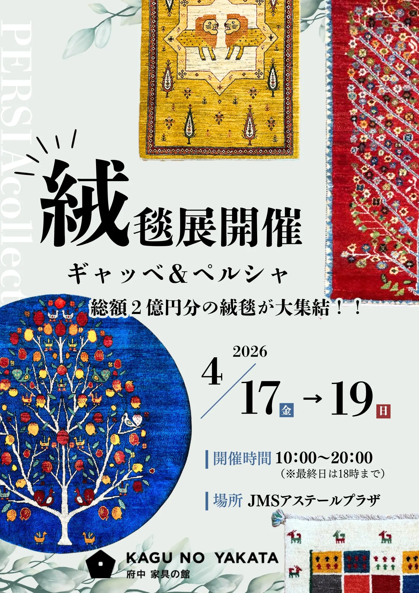 参加していた家具展示会で出品者に勧められて取り扱い始めたギャッベ。今までの絨毯になかった柄やモチーフの多さ、そして優しい手触りが好評でした。